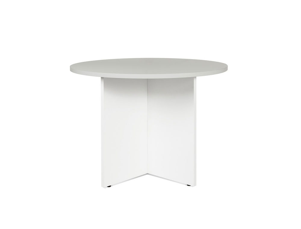 Mesa de reunion rocada meeting 3005an04v24 estructura madera gris en aspas tablero blanco 100 cm diametro