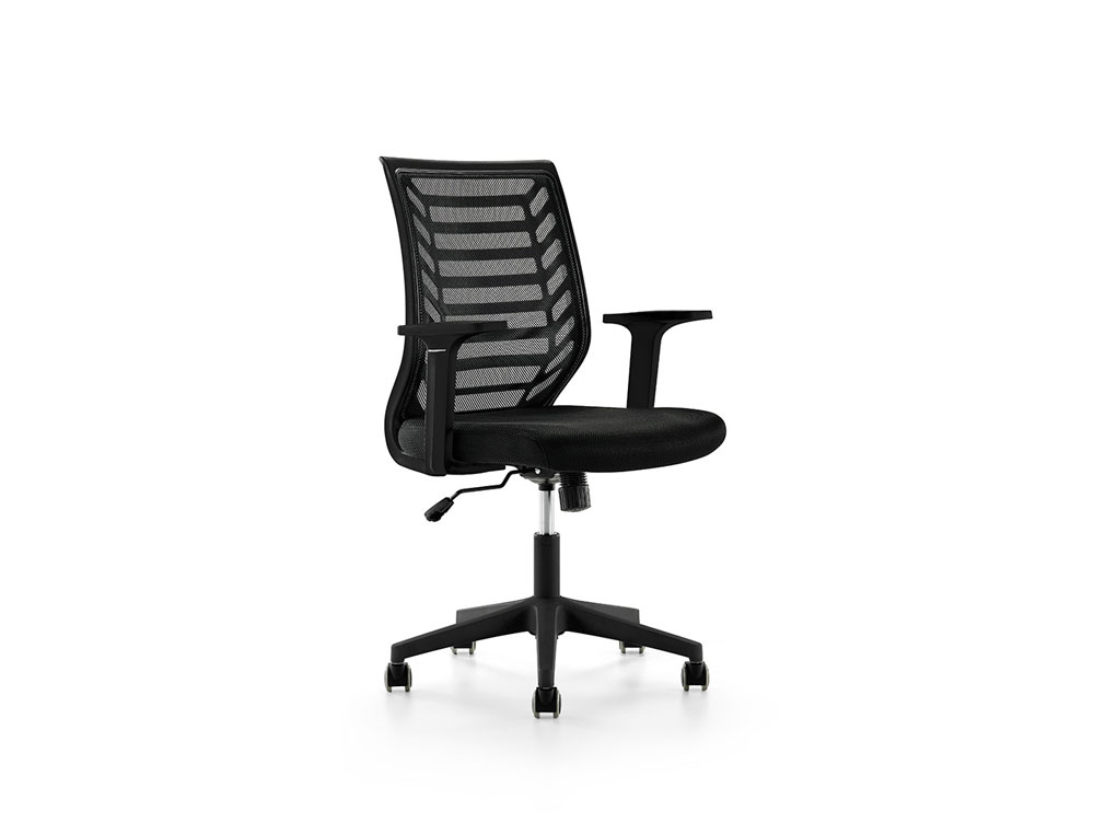 Esta silla giratoria de oficina combina funcionalidad, comodidad y seguridad para brindar un entorno de trabajo ergonómico y saludable. Cuenta con un respaldo en malla transpirable y un asiento tapizado en tela ignífuga, diseñado para mejorar la ventilación y la protección durante largas jornadas laborales. Su mecanismo sincronizado de inclinación y apoyo lumbar ajustable promueven una postura adecuada, disminuyendo la fatiga y molestias musculares.
