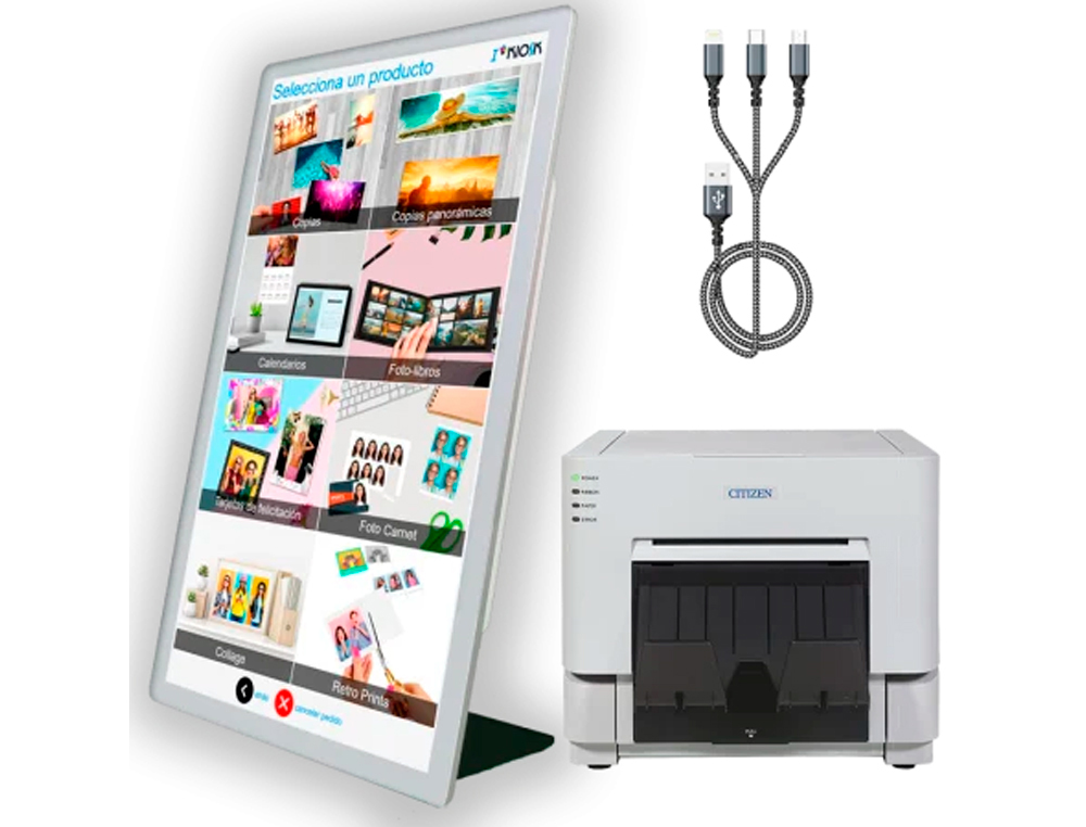 Ya sea que estés planeando un evento o administrando una tienda, este kiosko fotográfico es la elección perfecta para proporcionar a tus clientes una experiencia de impresión rápida, cómoda y creativa. Disfruta de comodidad y eficiencia con cada impresión, y ofrece a tus clientes la posibilidad de llevarse sus recuerdos de inmediato.